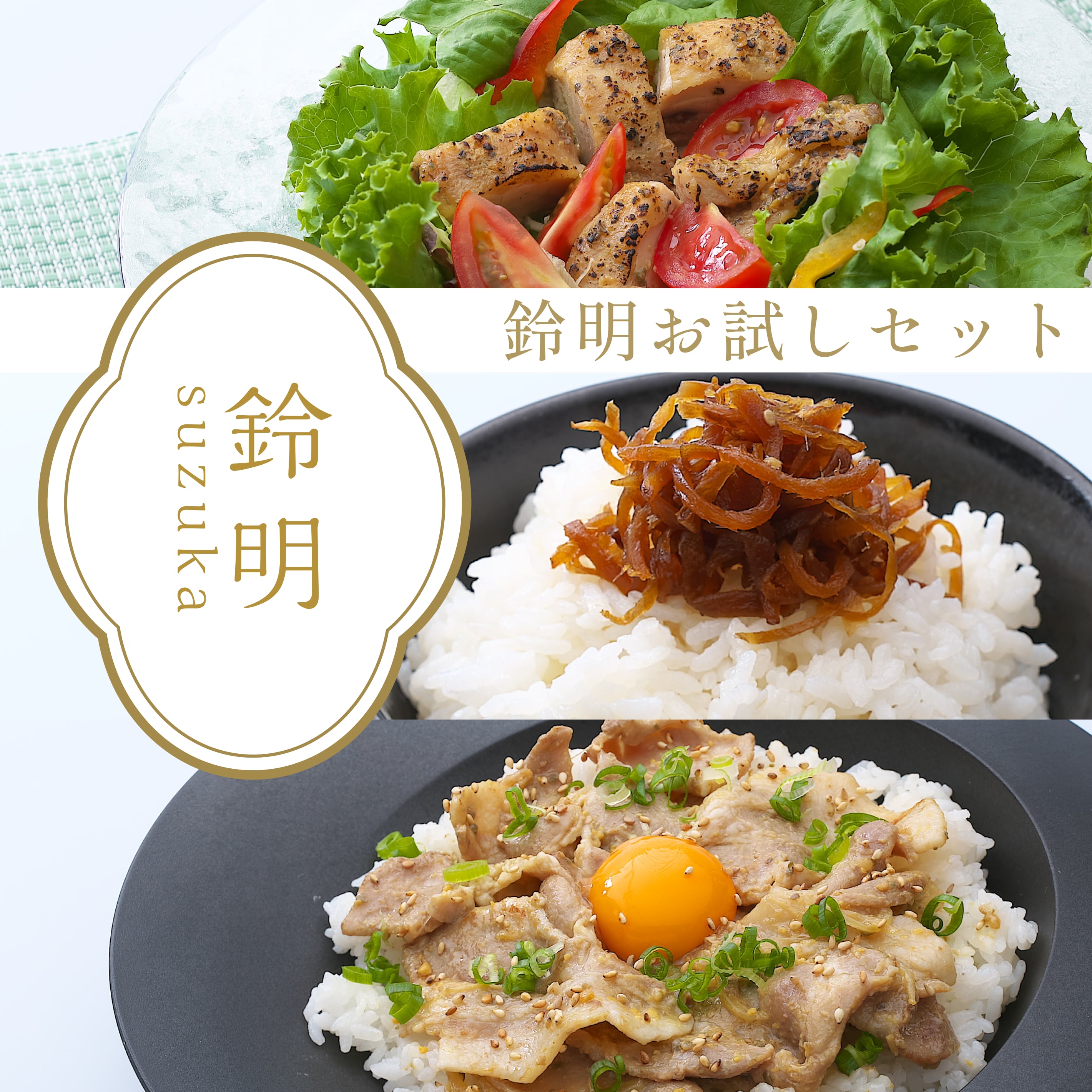 鈴明お試しセットは、1つずつ商品を試してみたい方におすすめのセットです。このセットには、鶏山椒みそ焼き、豚山椒みそ焼き、そして生姜の佃煮の3種類の商品が含まれています。